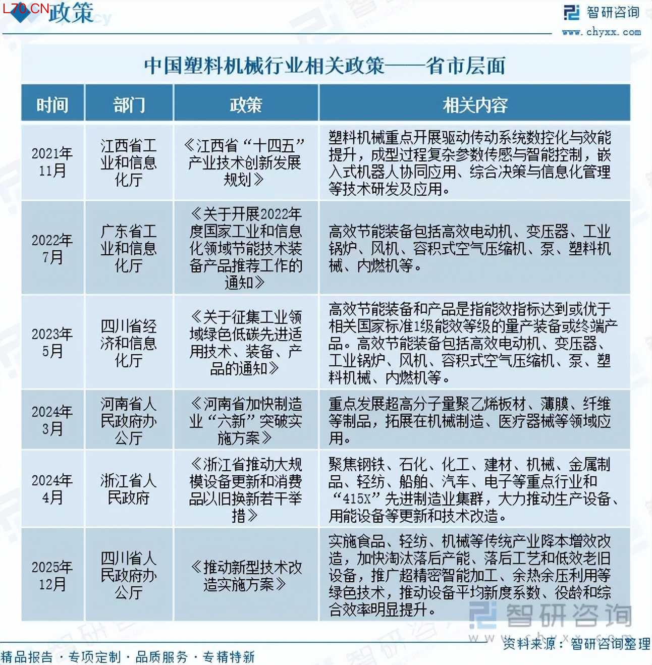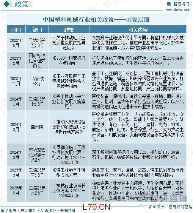 注:本文节选出自智研咨询发布的《研判2026!中国塑料机械行业政策汇总、产业链、发展现状、重点企业及未来展望:政策支持与技术迭代,塑料机械行业面临转型与革新[图]》行业分析文章,如需获取行业文章全部内容,可进入智研咨询搜索查看。