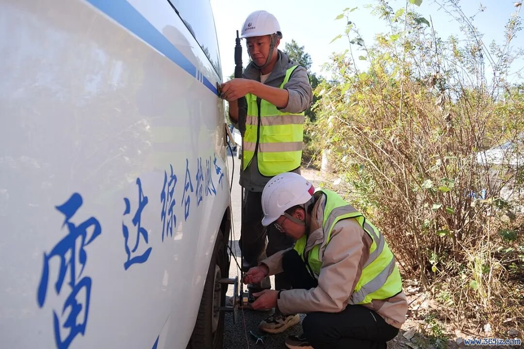 工作人员进行道路检测。