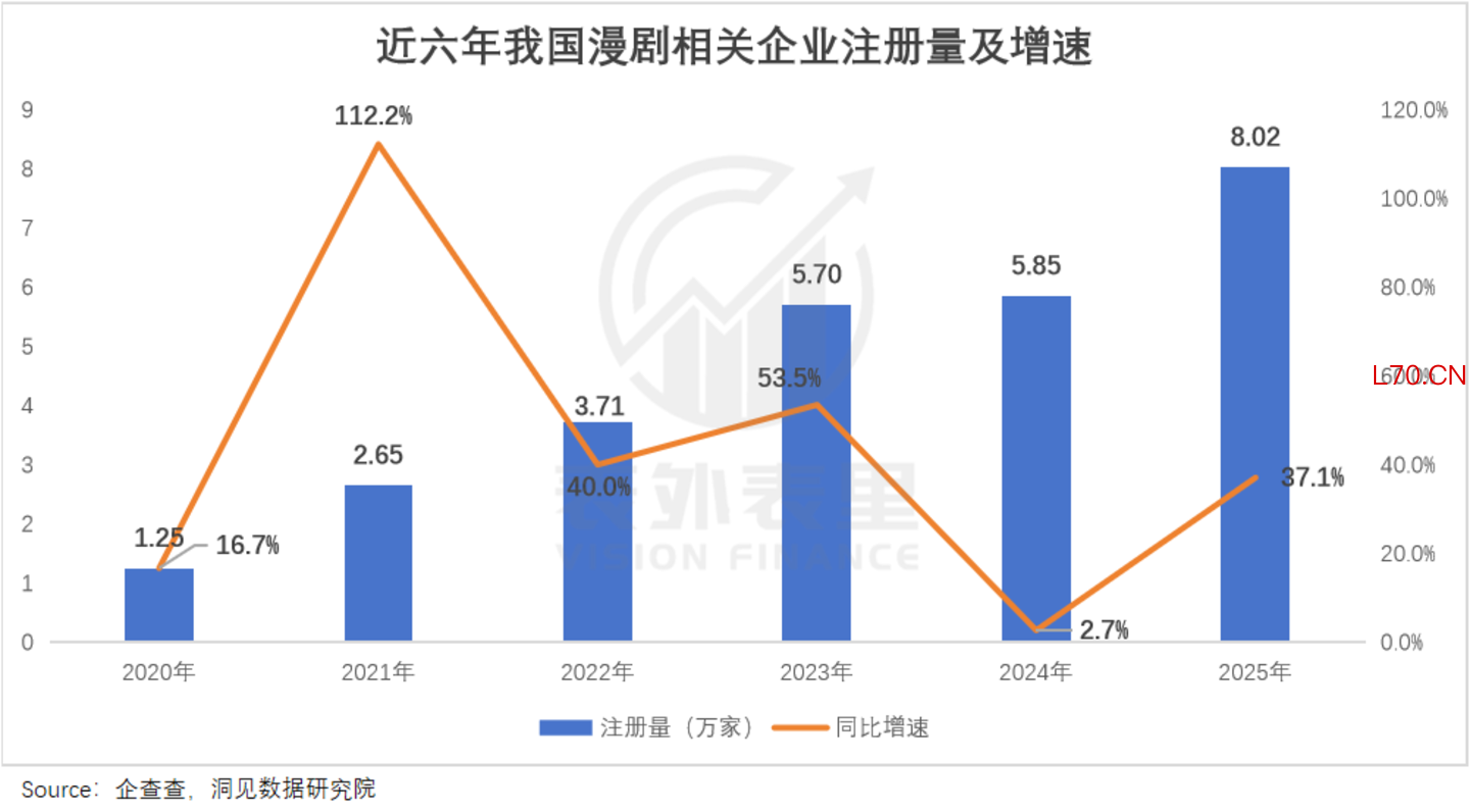 “想收割流量想疯了。”南瓜吐槽,面对乱象,她感到无力。而像这样疯狂逐利的玩家,还在源源不断地涌入:2025年,国内漫剧相关存量企业数量增长近四成,相比2024年再上一个台阶。