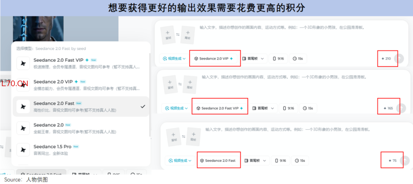 随着模型的不断调价,499元的会员积分降到了6000,单条消耗涨到70分。如今想要稳定出片,还得再额外选用VIP通道,单条消耗高达210分。再加上并发量从10条缩减至1条,整体不仅成本大幅上涨,产能和效率也明显下降。