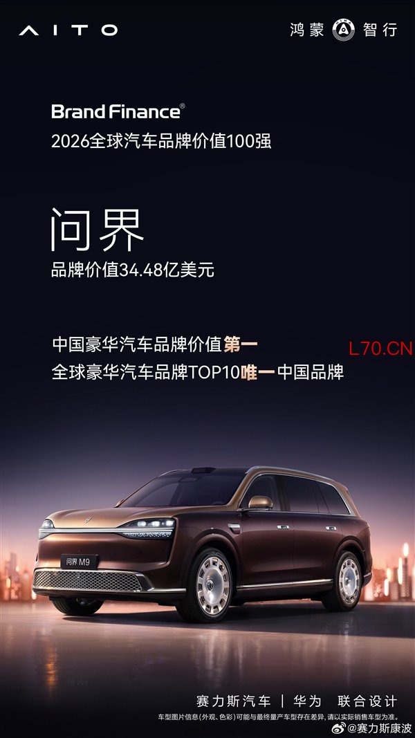 问界以34.48亿美元的品牌价值,位居中国豪华汽车品牌价值第一,同时成为全球豪华汽车品牌TOP10 中唯一的中国品牌,创下中国汽车品牌在全球豪华赛道的全新纪录。