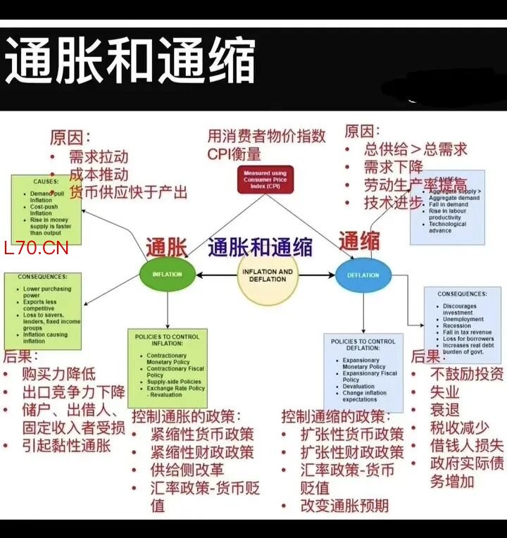 通缩:需求下降,经济衰退,商品价格下行。