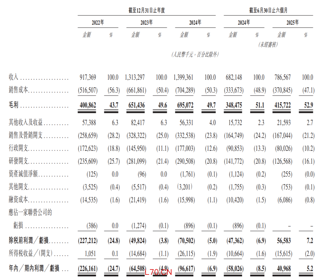 根据麦科田生物港股IPO招股书披露,麦科田生物2025年1-6月营业收入为7.87亿元,期内利润4,096.8万元,毛利率52.9%。