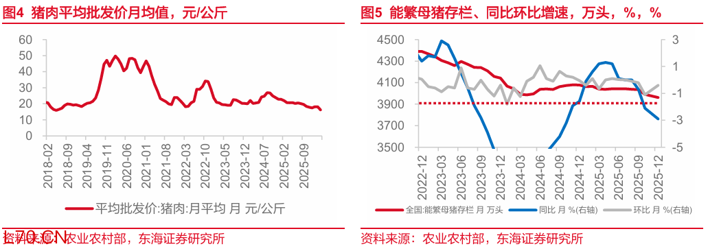 季节性下,食品>非食品,消费品>服务。同一维度下(与春节较晚的年份做季节性比较,下同),拆分来看食品价格表现(环比-2.70%,均值-3.15%)要好于非食品(环比-0.20%,均值-0.17%),消费品价格表现(环比-0.30%,均值-0.93%)要好于服务(环比-1.10%,均值-0.56%)。