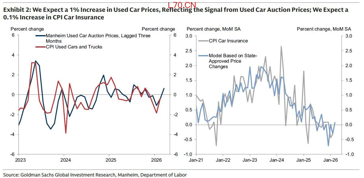 ①汽车。高盛认为,汽车通胀预计将参差不齐,反映出二手车价格根据二手车拍卖价格信号上涨1%;新车价格持平,反映出新车销售激励措施基本未变;以及汽车保险价格上涨0.1%,反映出高盛的在线数据集所指示的保费上涨。