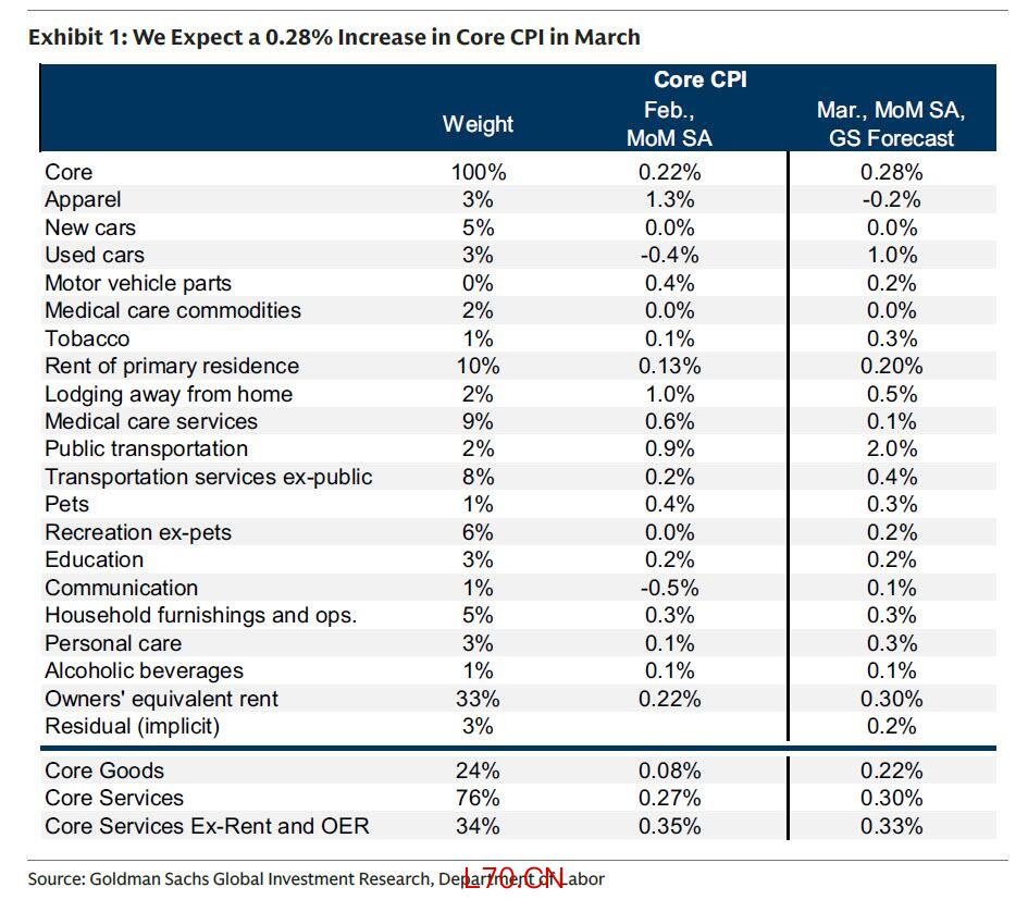仔细查看高盛的预测报告,该行重点介绍了预计在本周报告中将看到的四个关键通胀组成部分的趋势: